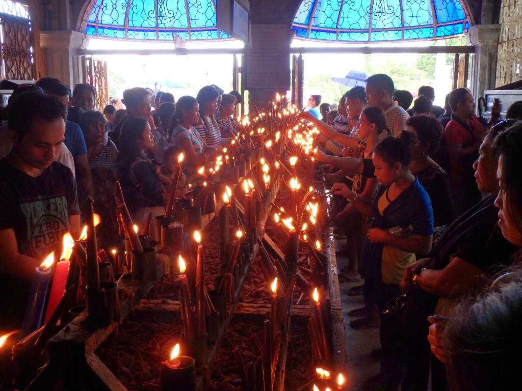 教会の入口すぐに「願いの場(Wish Place)」と呼ばれている場所があり、ここではキャンドルに火を灯します!これは参拝目的の一つでもあり、キャンドルに火を灯して願い事をすると、その願いが叶うと言われています!近くのカウンターで1本7ペソで購入でき、キャンドルは色によって願い事の種類が異なります!全部で13色あり、赤色→恋愛、黄色→平和、緑色→成功、金色→健康、ピンク色→感謝、青色→忍耐力などになります!行った際には是非お祈りしてみてください😄!