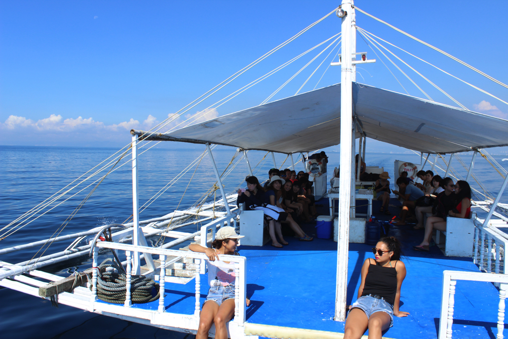 今回は人数が多かったので、バンを2台借りて行きました!バンの中では、みなさんぐっすりと寝ていました(笑)港へは、1時間ほどで到着。この日は快晴で、絶好のアイランドホッピング日和でした^^