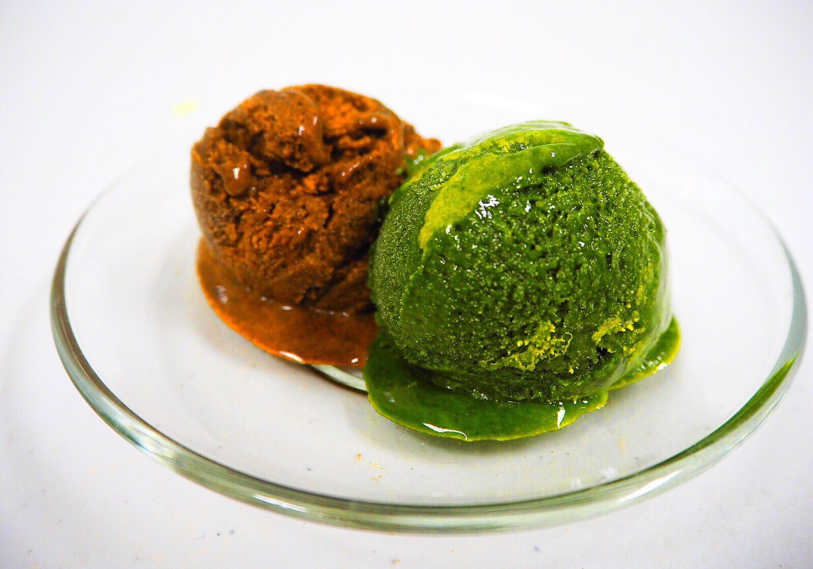 まずは抹茶とほうじ茶のアイスを試食!こちらはTAKAさんと私で一生懸命作っている手作りアイスです。皆さんの反応が気になります。