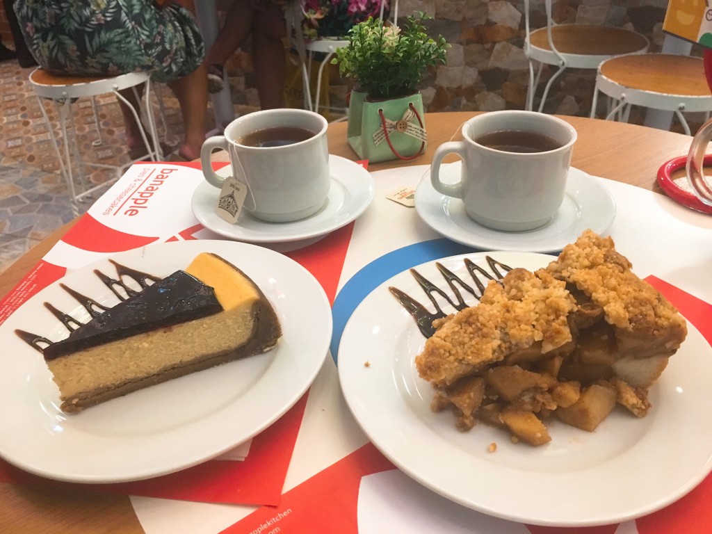 私たちはブルーベリーチーズケーキとアップルパイと紅茶をそれぞれ注文しました。