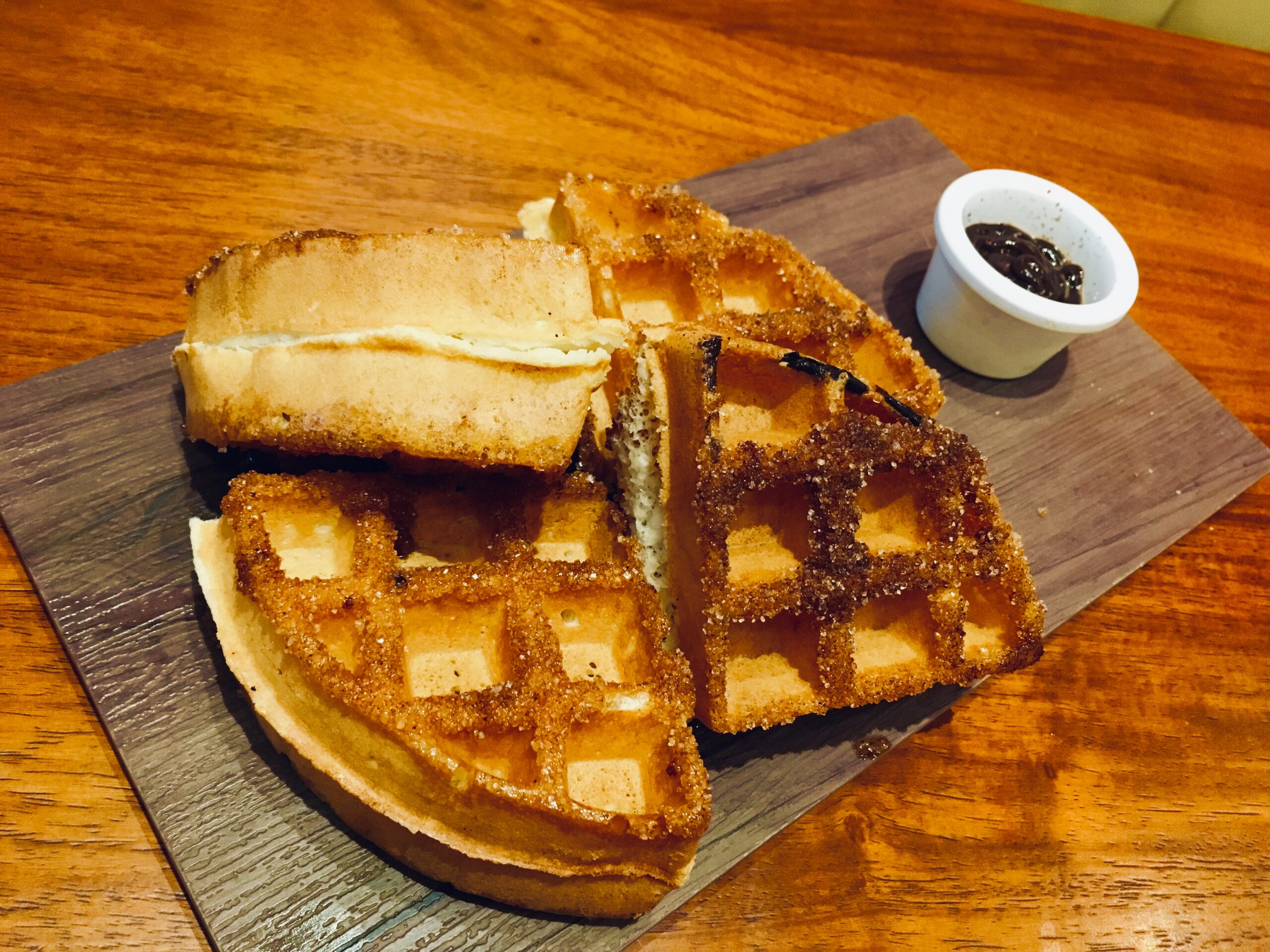 チュロス風のワッフルなのですが、シナモンとチョコレートソースの相性がバッチリです♪こちらの商品もかなり甘いので、超甘党の方にオススメです!シェイクもそうだったのですが、ワッフルも想像以上に大きくてボリュームがあります 😉