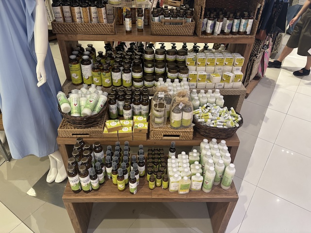 現地産のココナッツオイルやモリンガ、バージンココナッツバターを使った自然派スキンケア製品や石鹸も人気。日本ではなかなか見かけない香りや素材も魅力です。