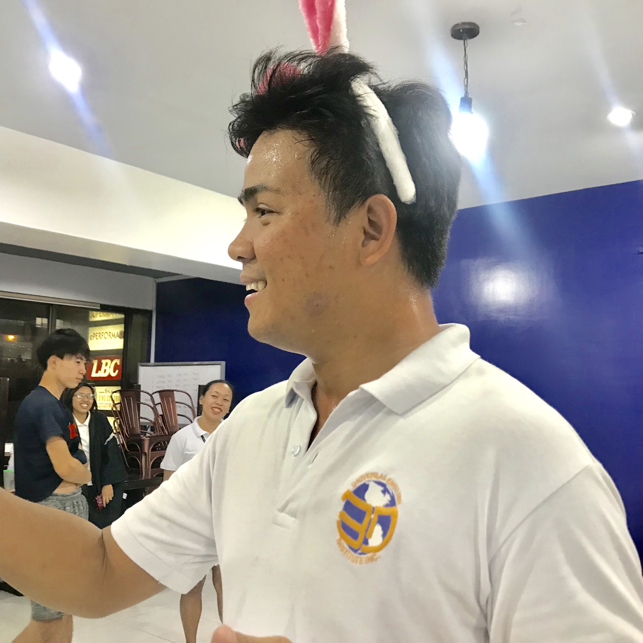 まずはウォームアップで、早口言葉ゲームをしました。司会はTeacher Ryen、うさ耳をプレゼントしたら喜んで付けてくれました♡