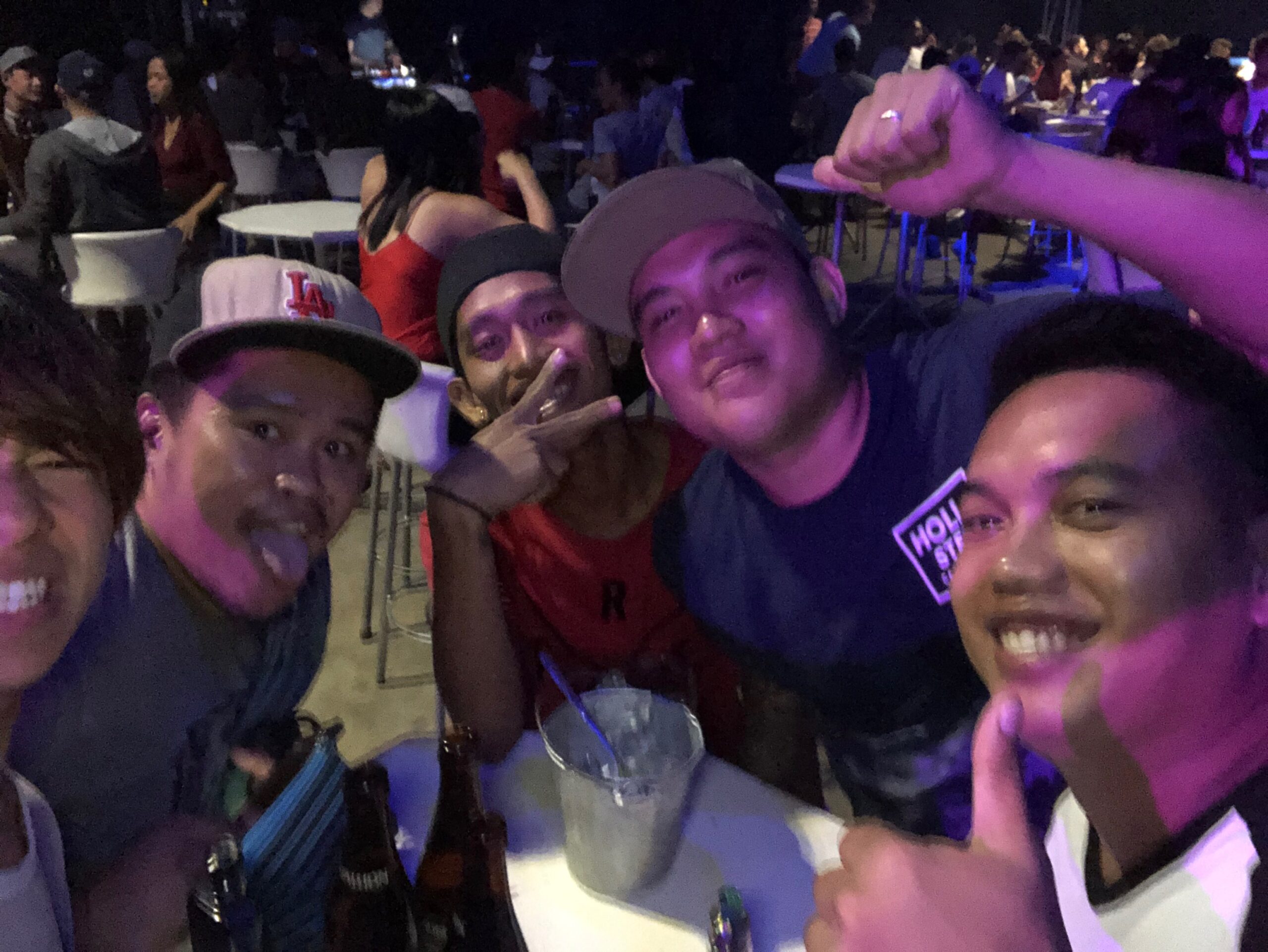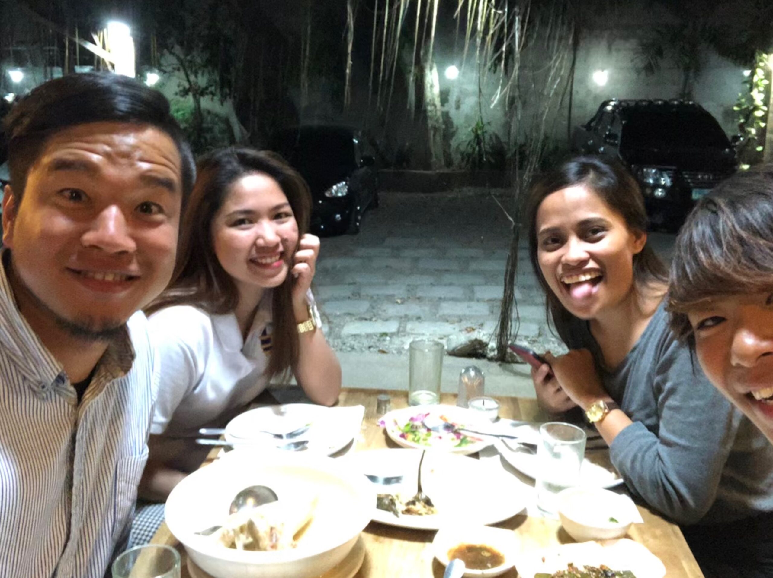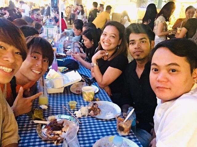 ナイトマーケットで相席になったインドとフィリピンのエンジニア達と乾杯