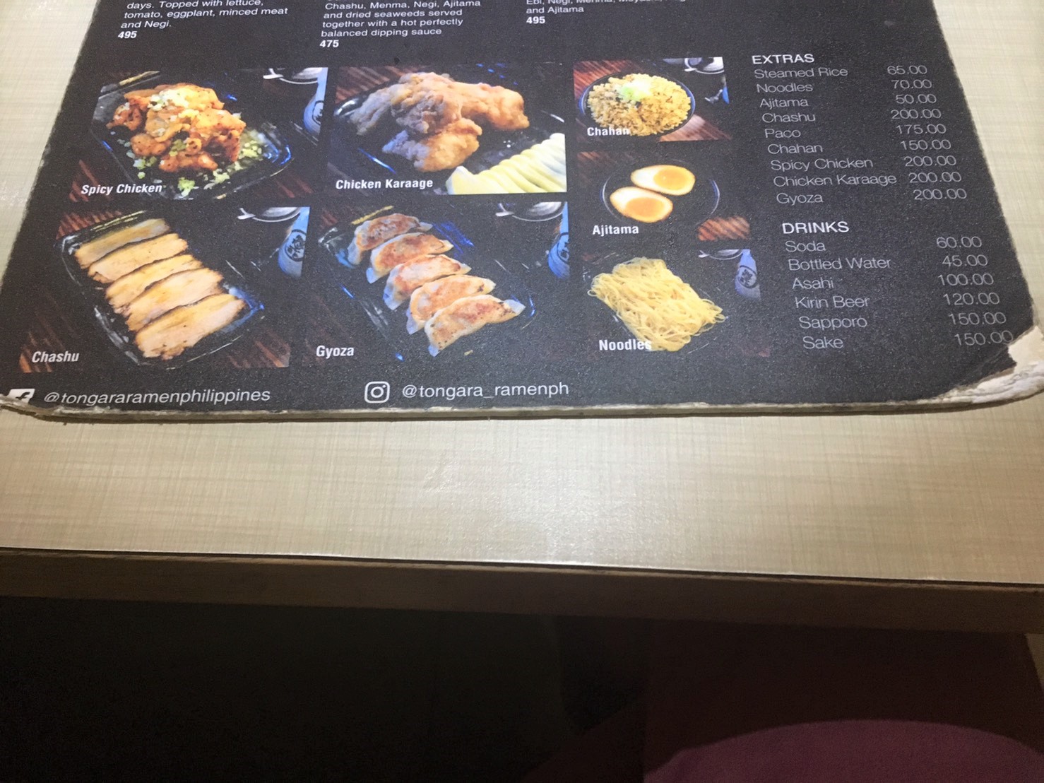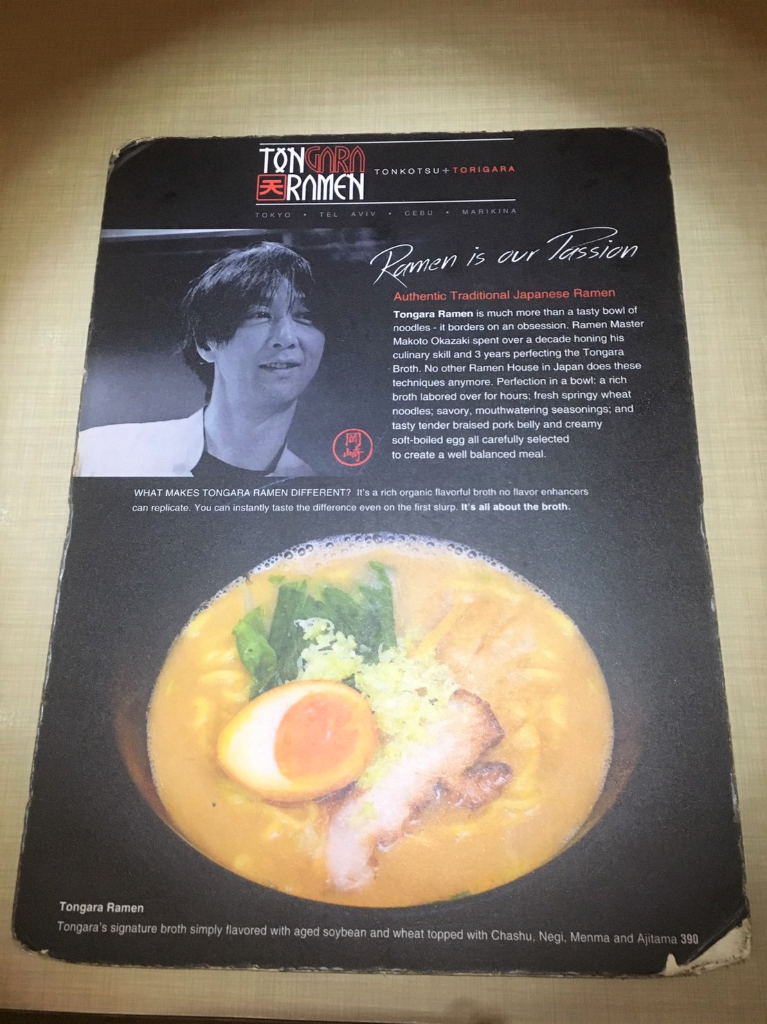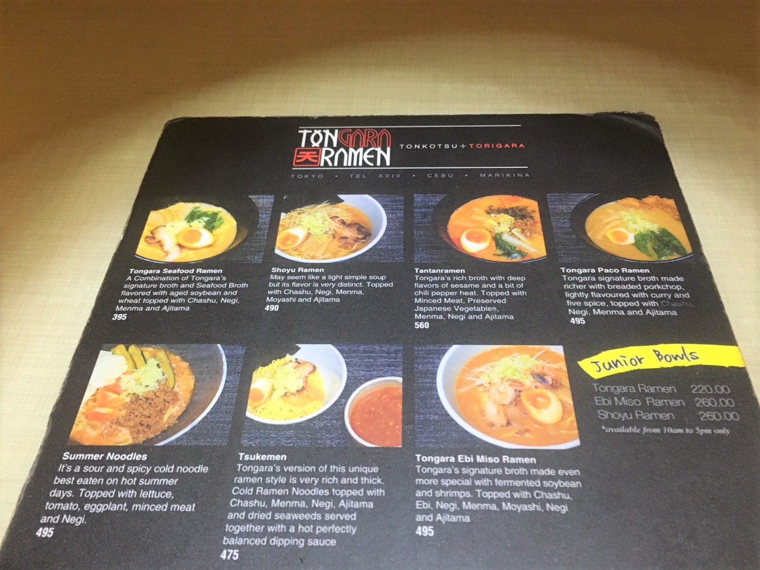 TONGARA RAMENは、セブ島のセブ市内のEscario Central Mall (エスカリオセントラル モール)という、商業施設の中に入っている、ラーメン屋です。おいしさは、日本で食べるラーメンと比べても、引けを取らず…。また接客やラーメンが出てくる早さなども、とても良かったです!