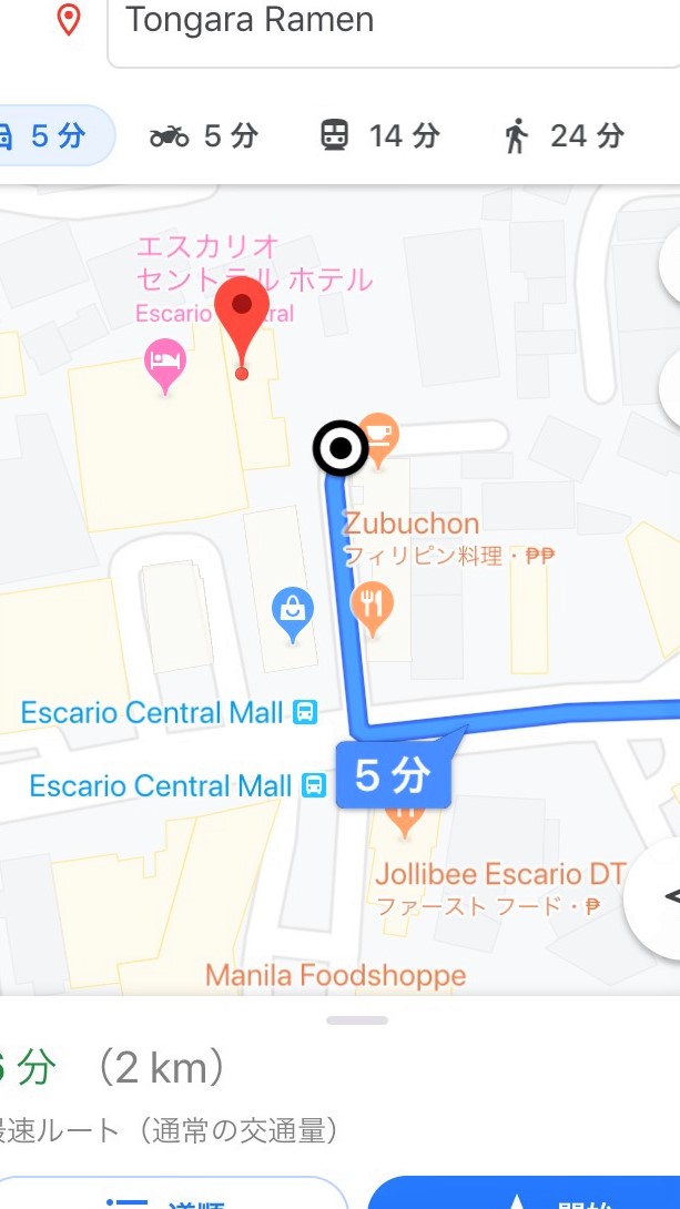 TONGARA RAMENは、エスカリオ通りという、道沿いにあるEscario Central Mallの左奥にあり、学校からはタクシーで10分〜15分ほどかかります。タクシードライバーにはEscario Central Mallと伝えて下さいね♪