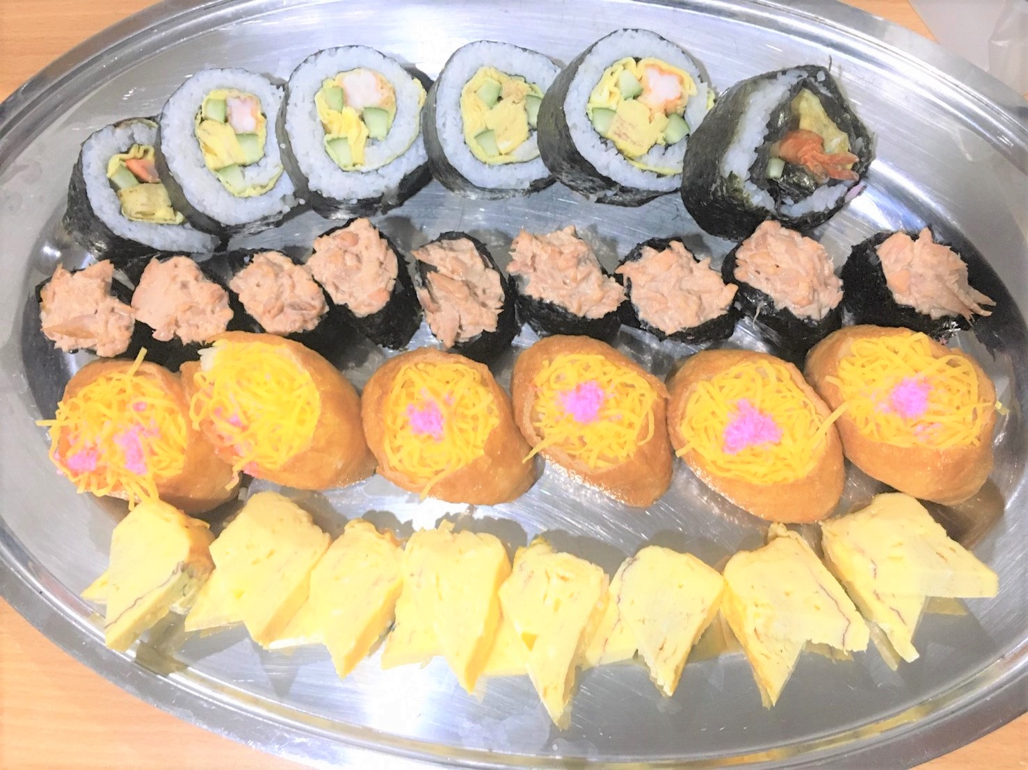 今回のメニューは、いなりずし、細巻き、太巻き、軍艦ずし・・・メニューの内容を聞いてるだけで、期待が膨らみます。