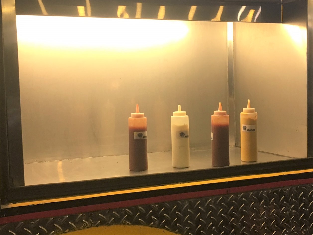 またお店のカウンターには、いろいろな調味料が置いてて、お好みでマヨネーズ、マスタード、ケチャップなどが、かけ放題となってます♪