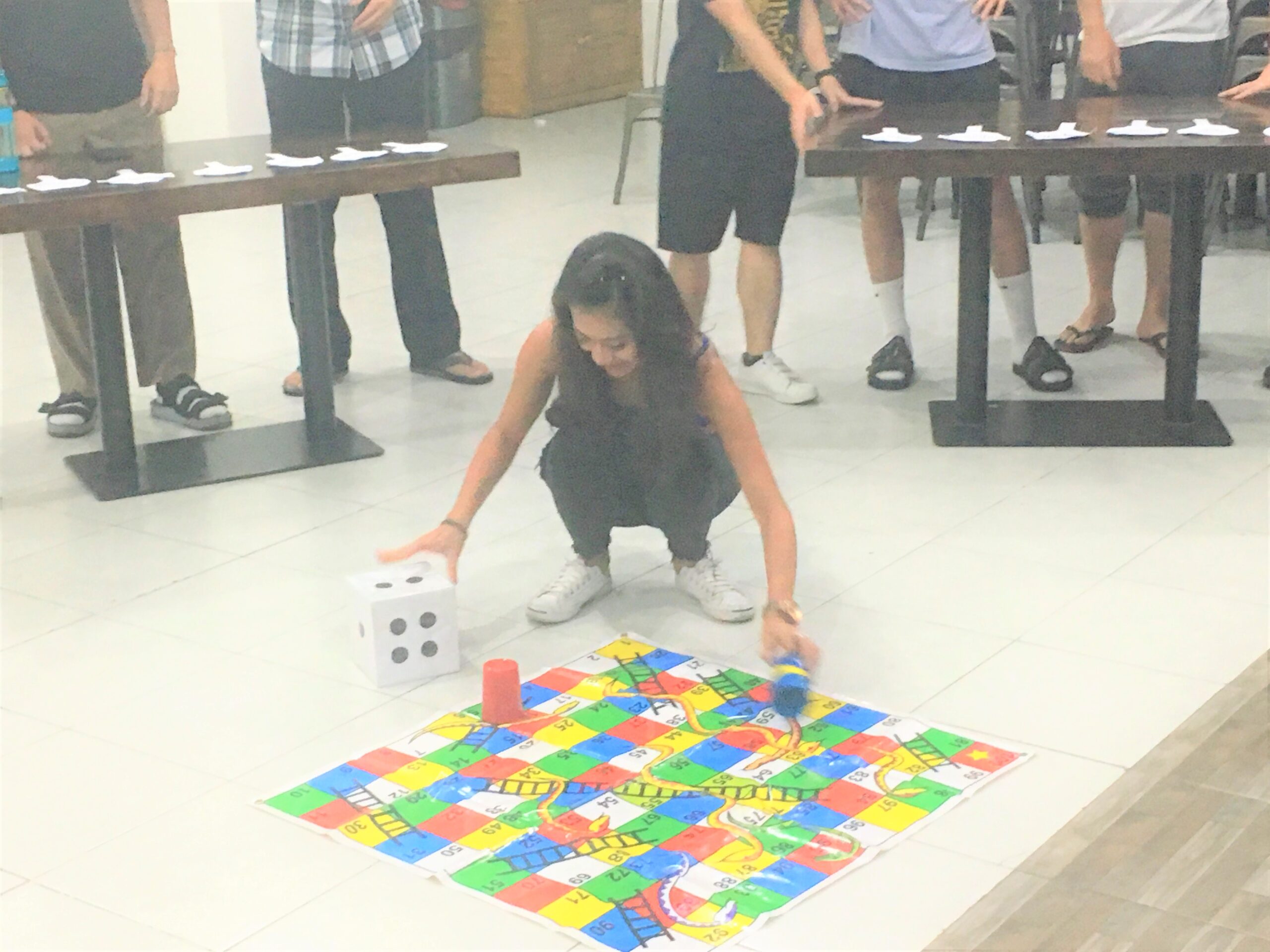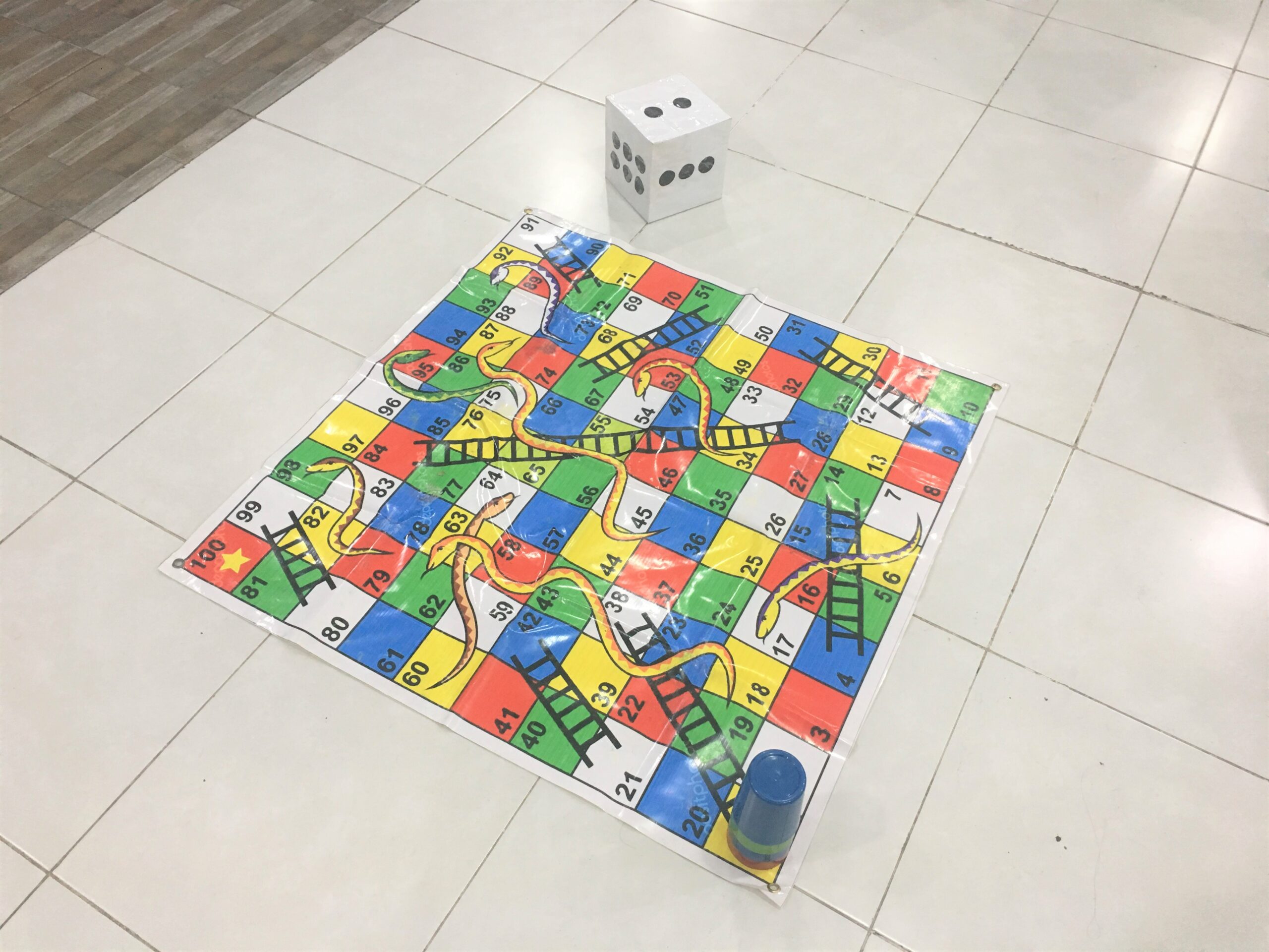 カフェテリア中央の前の方に置かれていた、パーティーゲーム用のSnakes and Ladders のゲーム版…どの様にしてゲームが始まるのか楽しみですね♪