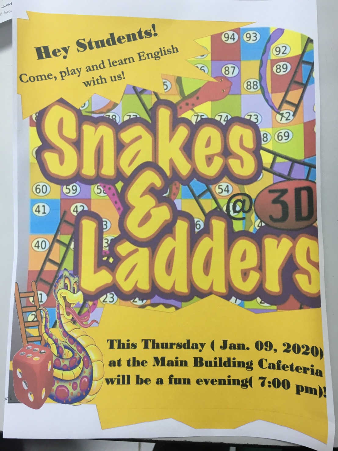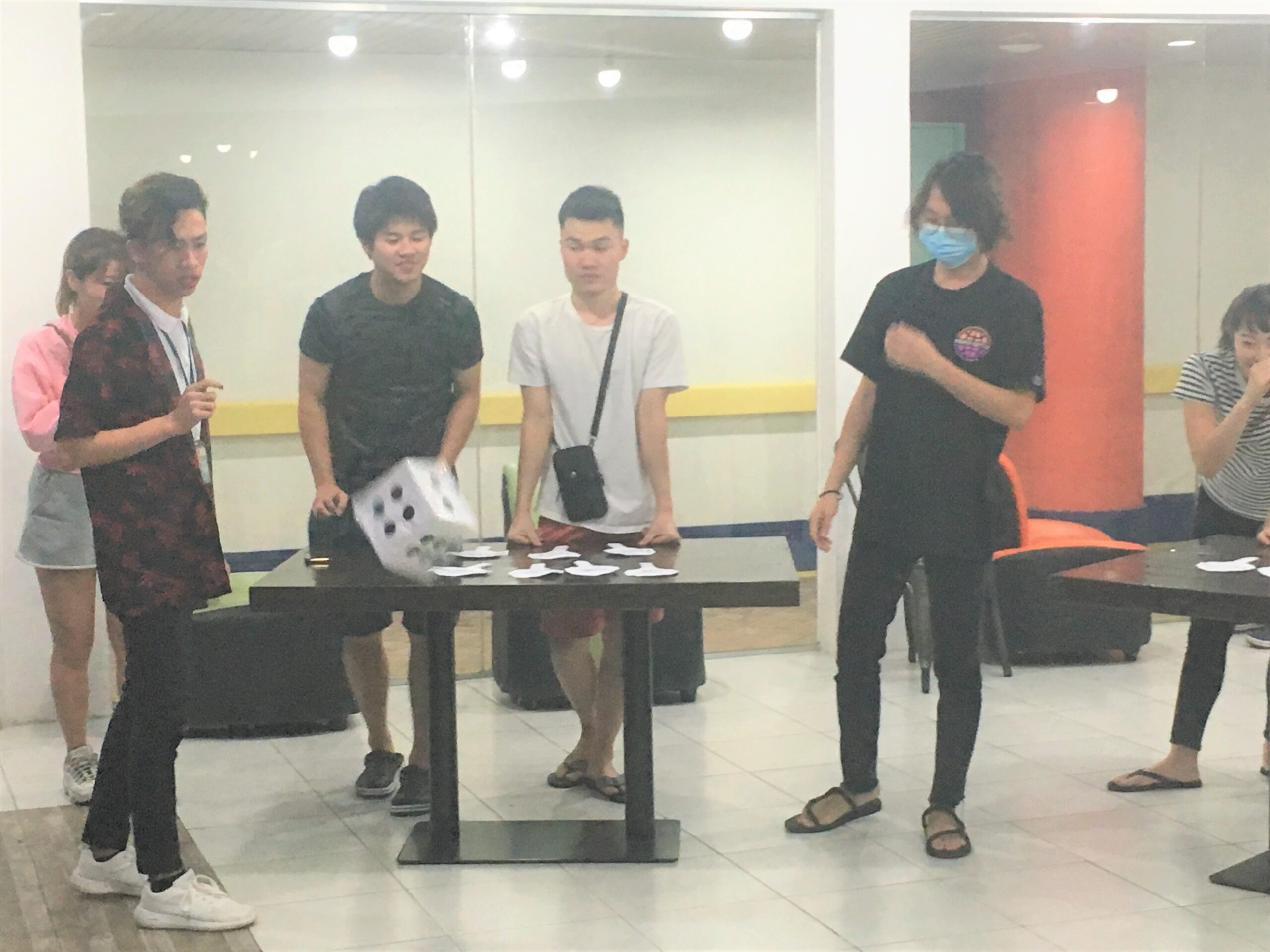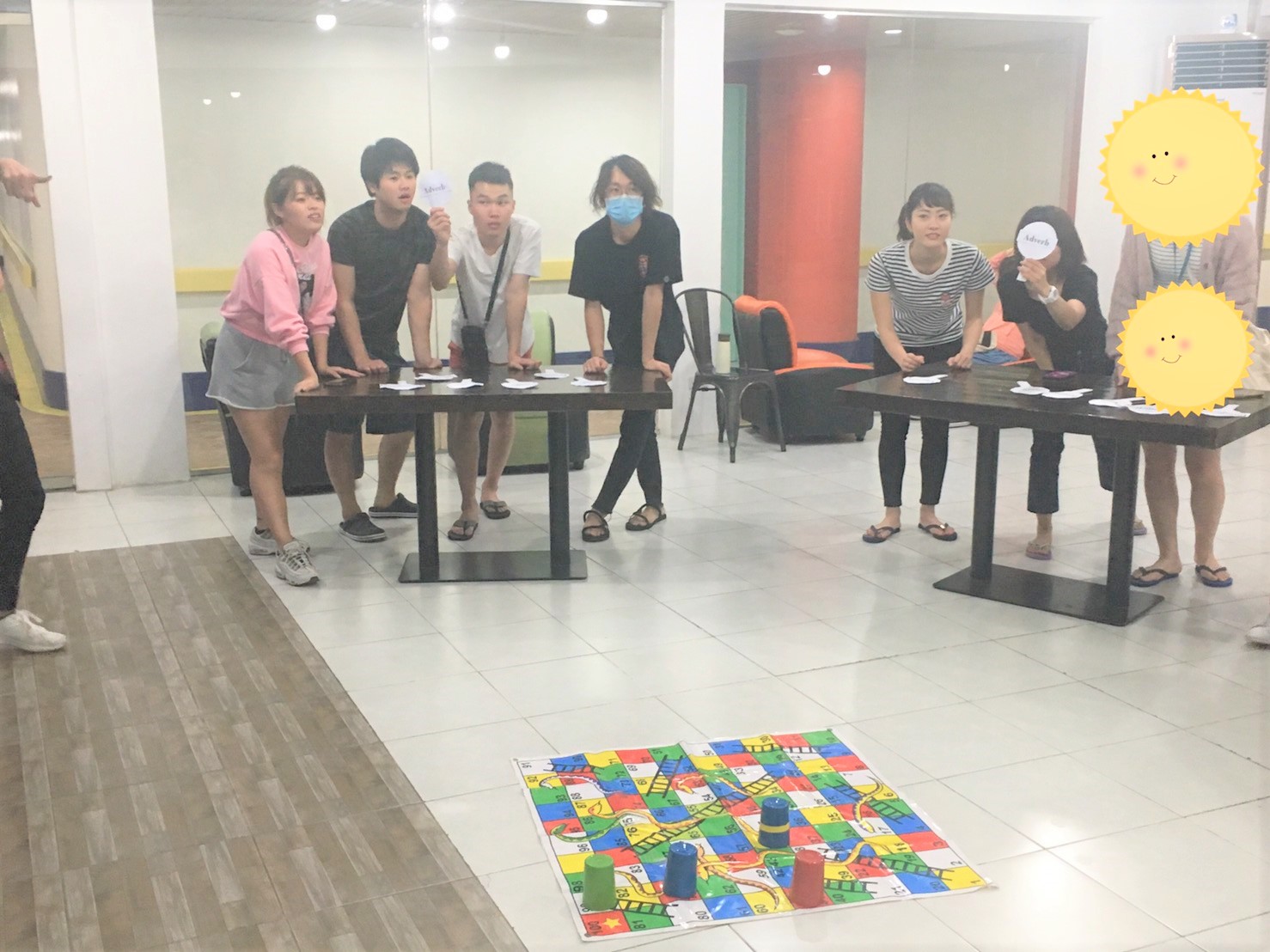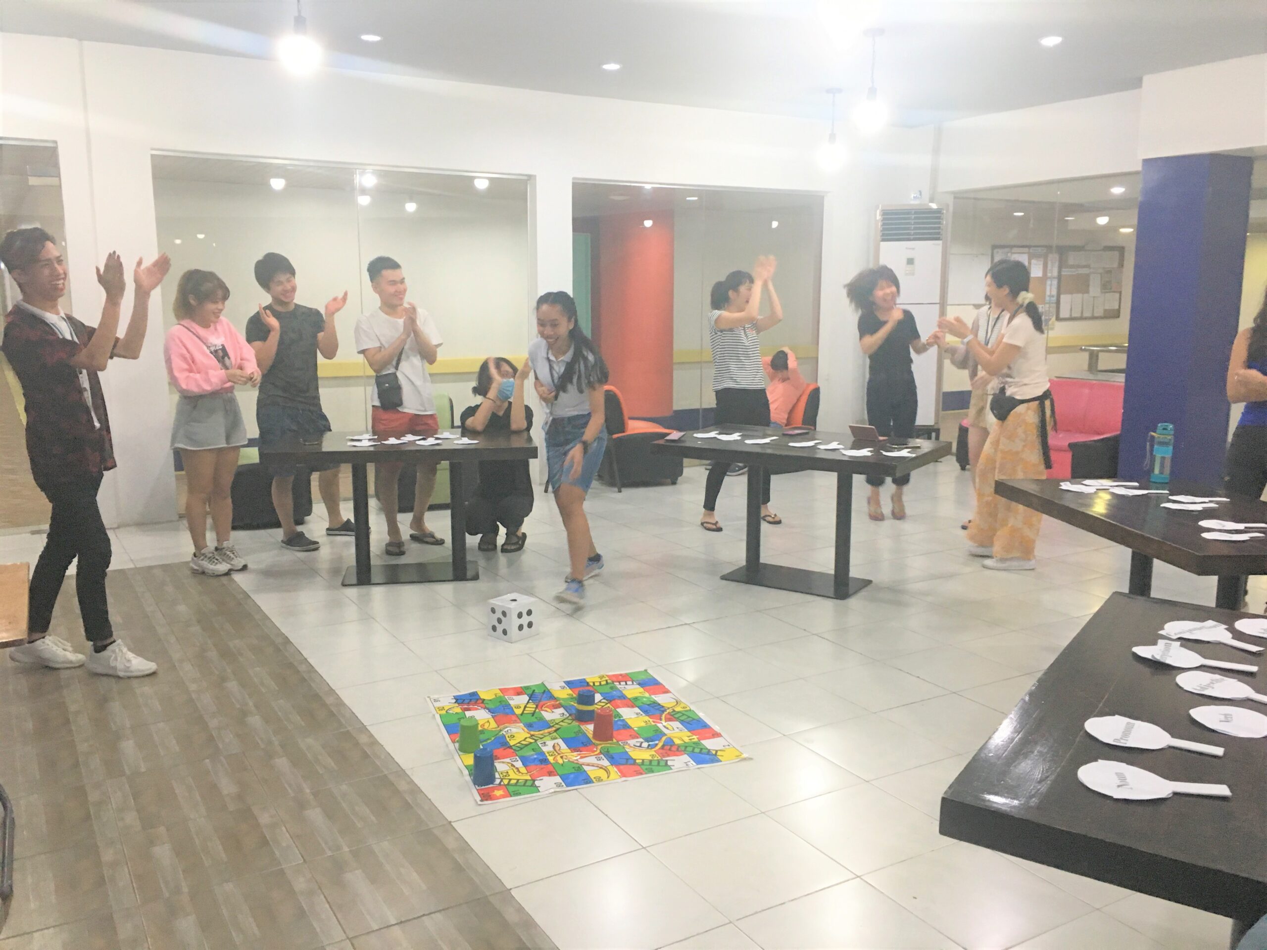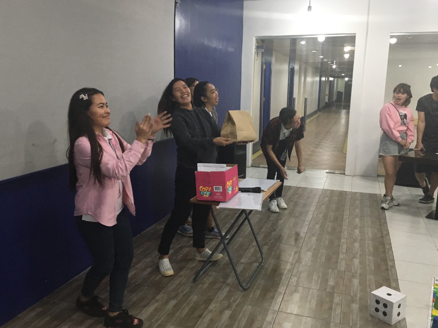 English Activityとは、3D ACADEMYで毎週木曜日、19:00から当校のメインビルにあるカフェテリアで開かれている課外活動の一つで、フィリピンや他の国で良く遊ばれているゲームに担当の先生たちが英語を楽しく学べるよう、アレンジしたものを用意しております。ゲームの内容については、前もって学校のオフィスやカフェテリアの近くにある掲示板等でお知らせされる仕組みになってます。