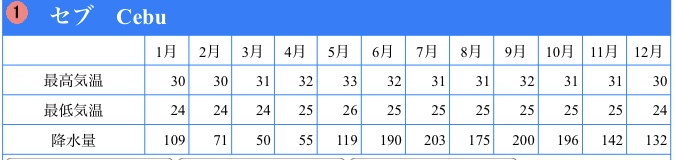 いきなりですが、セブの気温って1年でこんな感じになってるんです。
