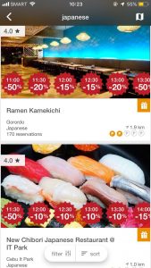このサイトと提携しているカフェやレストランにスマホから予約して、お店で予約画面を見せるだけでなんと10%〜最大50%オフになります!凄い!!