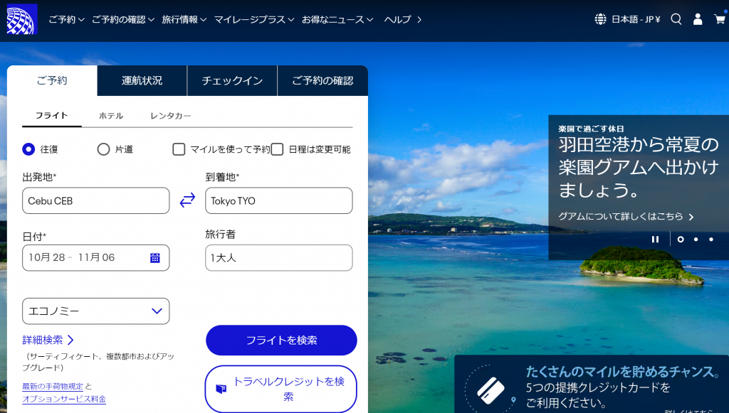 ユナイテッド航空(成田-セブで毎日運航)※2024年10月27日~