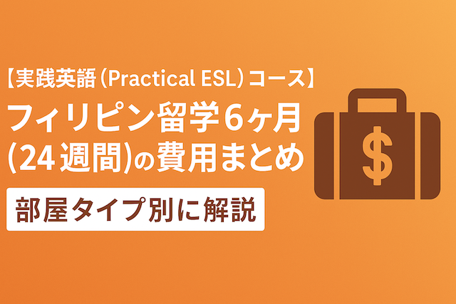 - 【実践英語(Practical ESL)コース】フィリピン留学6ヶ月(24週間)の費用まとめ|部屋タイプ別に解説