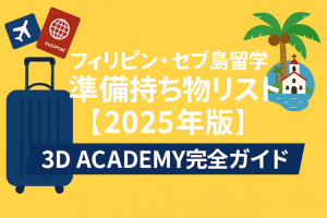 目次フィリピン・セブ … 続きを読む フィリピン・セブ島留学準備 持ち物リスト【2025年版】|3D ACADEMY完全ガイド