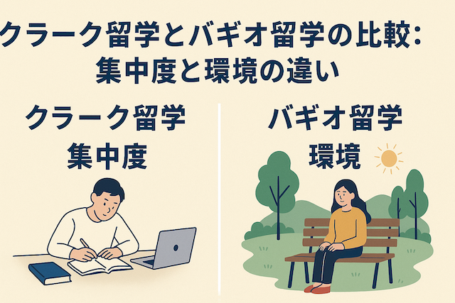 クラークは便利で快適な都市型の留学先、バギオは涼しい気候と厳しい学習環境で集中できる留学先として知られています。この記事では、両都市の特徴を比較し、あなたに合った留学先を選ぶためのヒントを紹介します。