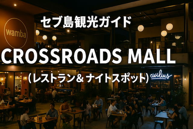 Crossroads Mall(クロスロードモール)は、セブ島で「食」と「ナイトライフ」を同時に楽しめるスポットです。昼は多国籍レストランでランチやカフェタイムを、夜はバーやクラブでにぎやかなナイトシーンを体験でき、観光客にもローカルにも人気があります。ショッピング中心のモールとは異なり、洗練された大人の時間を過ごせるのが特徴です。セブ市滞在中に、都会的で国際的な雰囲気を味わいたい人に特におすすめの場所といえるでしょう。