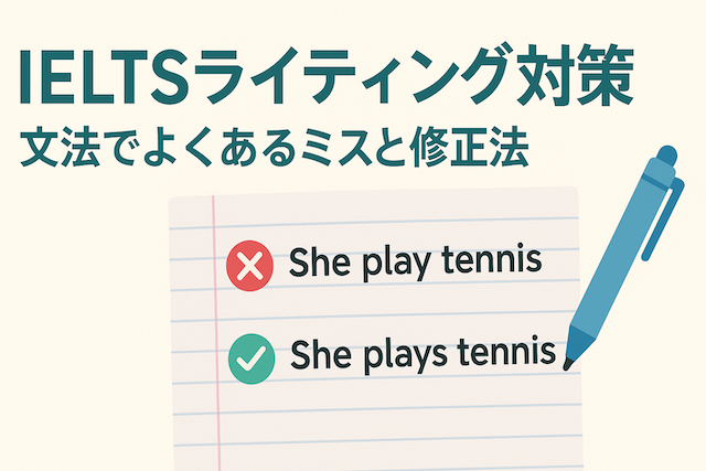 このページでは、IELTSライティングで受験者がよく犯す代表的な文法ミスを整理し、正しい使い方と修正方法を例文とともに解説します。基本をしっかり押さえることで、文法の減点を防ぎ、より高いバンドスコアに近づくことができます。