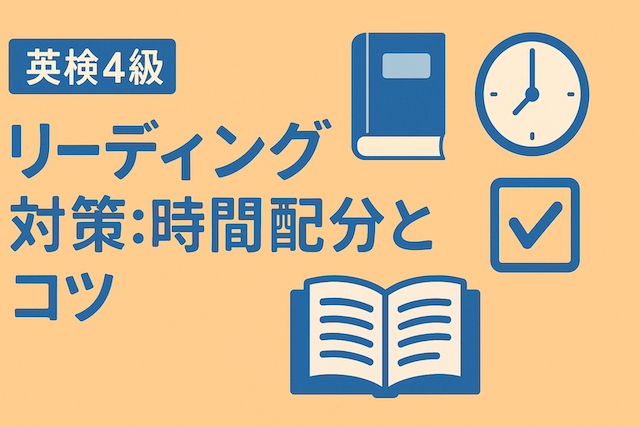 限られた時間の中で正確に読み取るためには、設問の順番やスピード配分を意識することが大切です。この記事では、英検4級リーディングの出題形式、理想的な時間配分、そしてスムーズに解くための実践的なコツをわかりやすく紹介します。