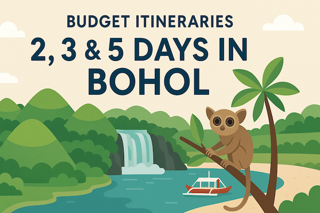 In this guide, we’ll walk through 2-day, 3-day, and 5-day budget itineraries that balance sightseeing, relaxation, and cost efficiency. These itineraries are designed for backpackers, digital nomads, or any traveler who wants to experience the best of Bohol without breaking the bank.