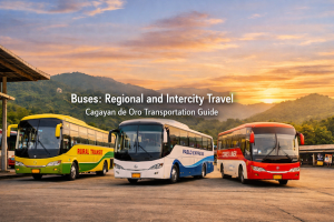 ContentsBuses: Regional and Intercity TravelCagayan de Oro Transportation GuideWhy Use Buses in Cagayan de Oro?Major Bus Terminals in Cagayan de OroAgora Integrated Bus TerminalBulua Bus TerminalMajor Bus Companies Operating in Cagayan de OroRural Transit of Mindanao (RTMI)Super Five TransportBachelor ExpressOther Regional OperatorsPopular Intercity Bus Routes from Cagayan de OroCagayan de Oro to Iligan CityCagayan de … Continue reading Buses: Regional and Intercity Travel:Cagayan de Oro Transportation Guide