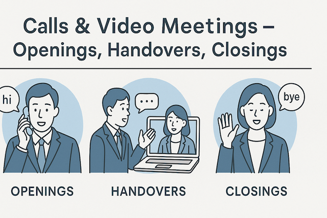 This guide will cover openings, handovers, and closings in calls and video meetings, along with useful English expressions you can apply right away.