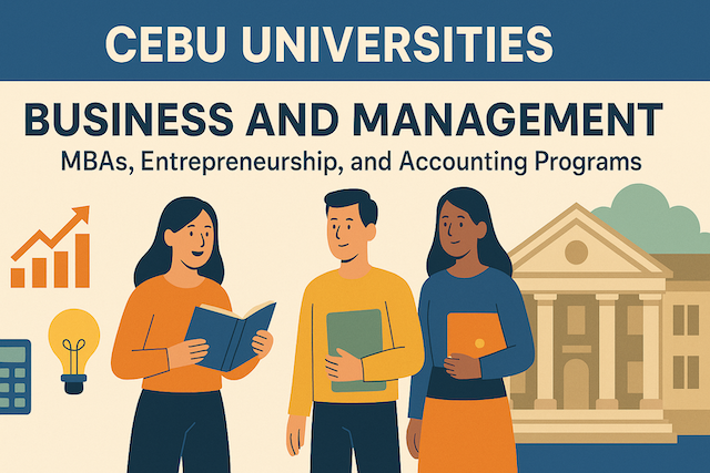 Most universities in Cebu offer Bachelor of Science in Business Administration (with majors like Marketing, Financial Management, Operations, and Human Resource Management), Accountancy and Management Accounting, and Entrepreneurship. At the graduate level, you’ll typically find Master of Business Administration (MBA), Executive MBA formats for working professionals, and specialized master’s offerings in management or finance.