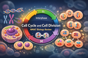 ContentsCell Cycle and Cell Division: NMAT Biology ReviewIntroduction to the Cell CycleOverview of the Cell Cycle PhasesInterphase: Preparation for Cell DivisionG1 Phase: Cell Growth and Metabolic ActivityS Phase: DNA SynthesisG2 Phase: Final PreparationsThe Mitotic Phase (M Phase)Mitosis: Division of the NucleusProphase: Chromosome CondensationPrometaphase: Nuclear Envelope BreakdownMetaphase: Chromosome AlignmentAnaphase: Separation of Sister ChromatidsTelophase: Nuclear ReformationCytokinesis: Division … Continue reading Cell Cycle and Cell Division: NMAT Biology Review