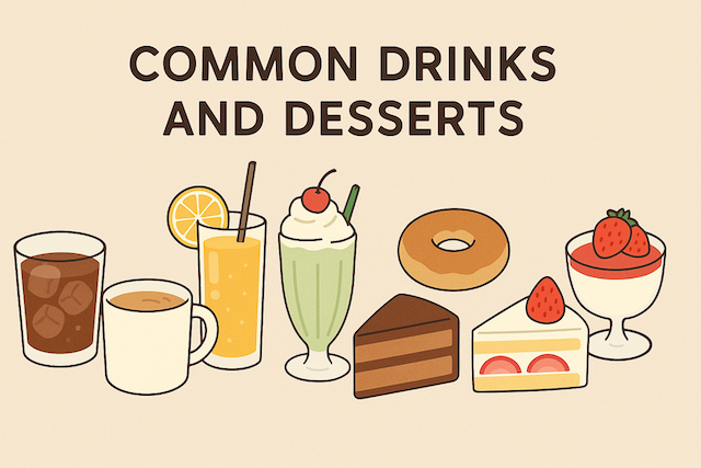 When you go to a café, restaurant, or even a friend’s house, drinks and desserts are always part of the experience. Learning how to talk about them in English will make you more confident in daily life, whether you are ordering at Starbucks, trying a new cake, or asking someone about their favorite beverage. This lesson will cover vocabulary, phrases, cultural notes, and practice dialogues.