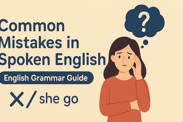 Spoken English mistakes are natural and part of the learning journey. The key is to notice, practice, and correct them regularly. Focus on patterns — articles, tenses, prepositions, and pronunciation — and build your speaking habits step by step.