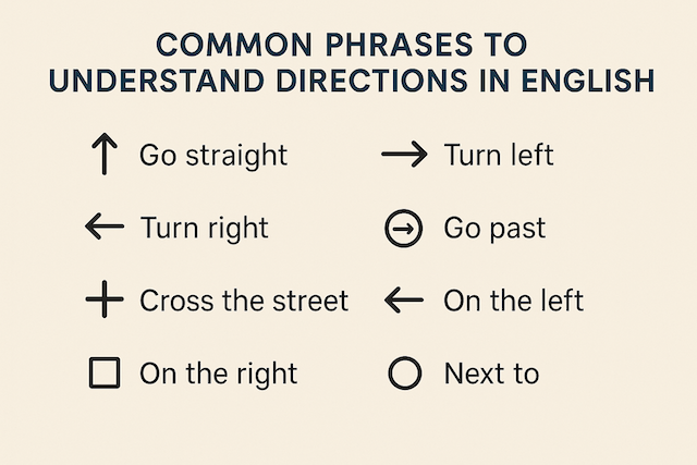 Before learning phrases, familiarize yourself with common directional vocabulary:
