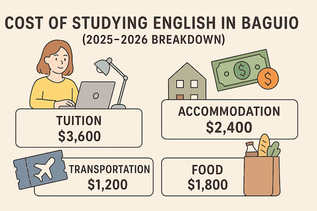 This guide offers a detailed 2025–2026 cost breakdown, covering tuition, housing, meals, transport, visas, and even hidden expenses, so that you can budget realistically for your English-learning journey in Baguio.