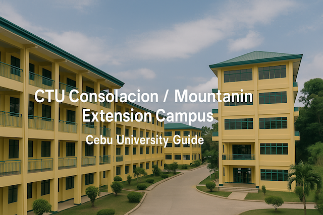 CTU Consolacion / Mountain Extension Campus is situated in the northern part of Metro Cebu, serving students from Consolacion, nearby mountain barangays, and neighboring towns. While it is not as large as the main Cebu City campus, it is positioned to be accessible by local jeepneys, tricycles, and motorcycles-for-hire. Exact directions, landmarks, and transport routes may vary, so it is best to check the latest details from the campus or CTU system’s official channels before your visit.