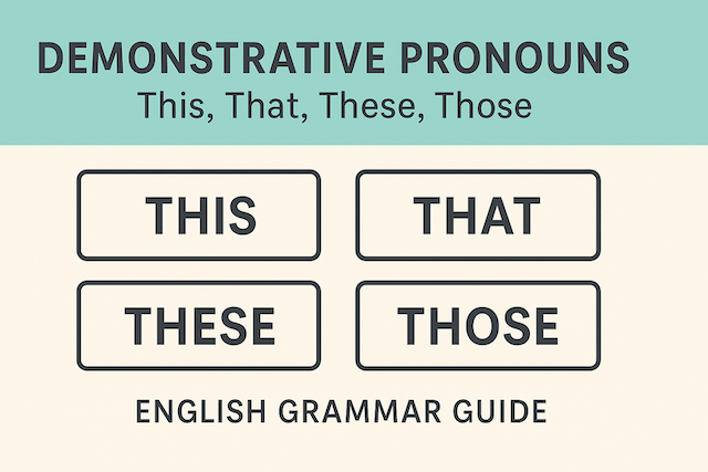 Demonstrative pronouns — this, that, these, those — are essential for everyday English. They help you indicate exactly which person, thing, or idea you’re talking about, whether it’s near or far, singular or plural. By understanding how to use them accurately, you can make your English sound natural, clear, and confident.