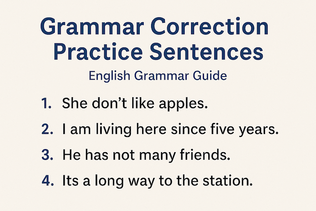 Improving grammar is one of the most effective ways to sound natural, confident, and fluent in English. Grammar correction practice helps learners identify common mistakes, understand the correct rules, and apply them effectively in daily writing and speaking. In this guide, you’ll find practical examples, corrected sentences, and explanations that will help you master English grammar step by step.