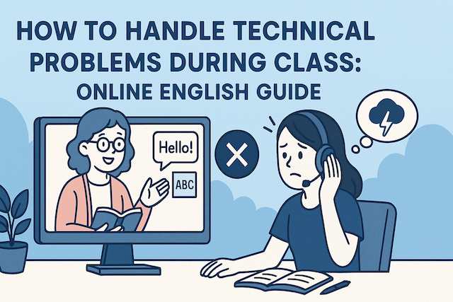 This guide explains how to handle technical issues calmly and effectively, ensuring you can continue your class smoothly and make the most of your online English learning experience.