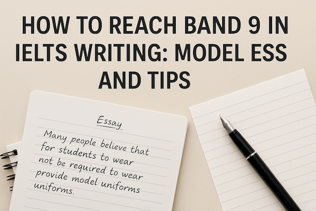 This guide explains what examiners look for, common challenges, and proven tips, along with model essay examples to show you what Band 9 writing looks like.