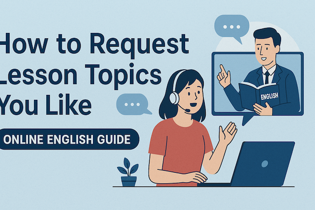 Requesting lesson topics means telling your tutor exactly what you want to learn or talk about in class. Instead of following only a fixed syllabus, you propose subjects that match your goals, interests, job, or daily life. Examples include “email writing for customer support,” “small talk for business,” or “travel English for Japan.” Clear requests help your tutor design focused activities and choose the right vocabulary, situations, and practice tasks.