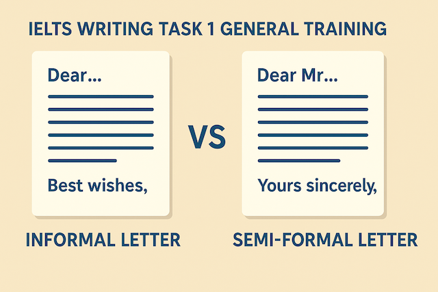 In IELTS Writing Task 1 (General Training), informal and semi-formal letters test your ability to adjust your writing tone and style depending on the recipient. Informal letters allow for a personal and relaxed style, while semi-formal letters demand a respectful yet friendly tone. Mastering these two types is vital for success, since most exam prompts fall into these categories.