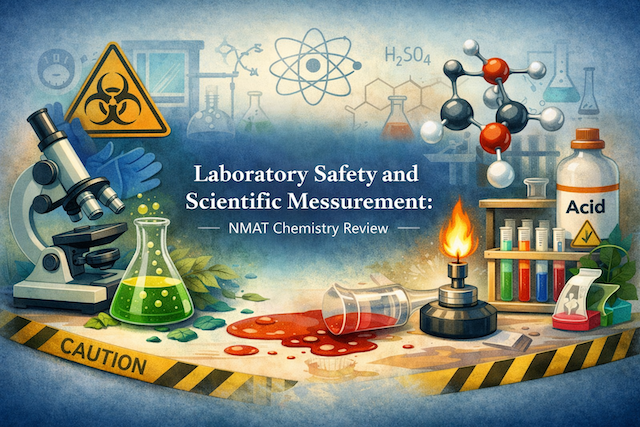To succeed in NMAT Chemistry, connect safety and measurement to problem solving. Safety awareness helps you interpret realistic lab scenarios, while measurement skills support accurate numerical work.
