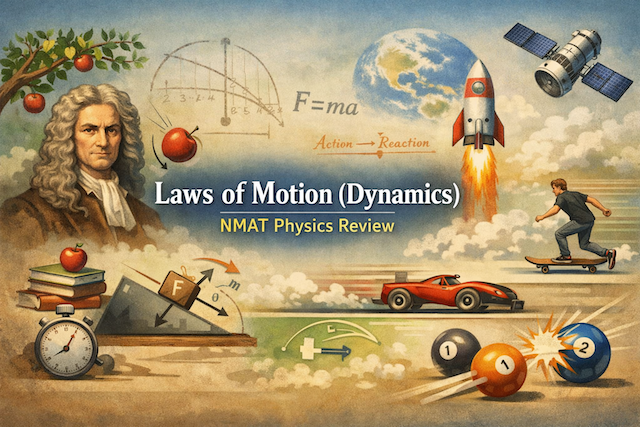 The Laws of Motion are the backbone of NMAT Physics and provide the tools needed to analyze real-world motion. By understanding Newton’s three laws, identifying forces correctly, and applying equations logically, you can confidently solve dynamics problems in the exam.