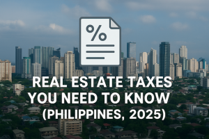 ContentsReal Estate Taxes You Need to Know (Philippines, 2025)1. Introduction: Why Real Estate Taxes Matter2. Taxes When Buying Property✅ 1. Capital Gains Tax (CGT)✅ 2. Documentary Stamp Tax (DST)✅ 3. Transfer Tax✅ 4. Registration Fee3. Annual Property Taxes (Real Property Tax)✅ Real Property Tax (RPT)4. Taxes on Rental Income✅ 1. Income Tax on Rent5. VAT … Continue reading Real Estate Taxes You Need to Know (Philippines, 2025)