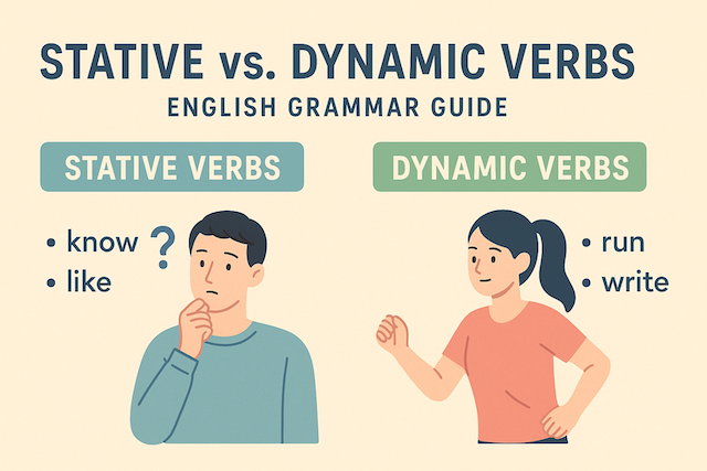 Understanding stative and dynamic verbs is essential to mastering English grammar. These two categories of verbs describe different types of actions or states, and choosing the right one affects not only meaning but also grammar—especially tense and aspect. This guide explains what stative and dynamic verbs are, how to use them correctly, and common mistakes to avoid.