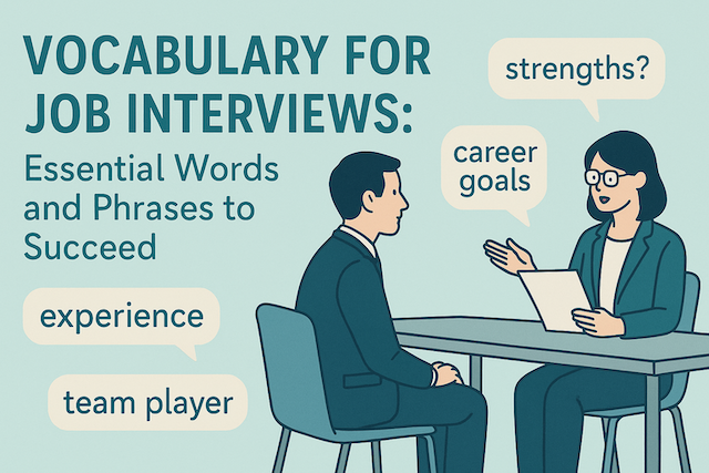 Strong vocabulary can make a big difference in your job interviews. By mastering words that describe your skills, achievements, and motivation, you can present yourself as a confident, capable, and professional candidate. Remember that vocabulary works best when combined with authentic examples and a genuine attitude. Practice these words, use them naturally, and you’ll be ready to succeed in your next interview.