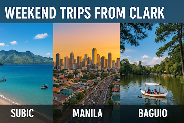 Clark is more than just a hub for study and work—it’s also the perfect starting point for unforgettable weekend adventures. Subic, Manila, and Baguio each offer something different: Subic brings you close to the sea, Manila immerses you in the bustling capital, and Baguio lets you breathe cool mountain air.