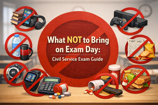 The Civil Service Commission (CSC) enforces strict rules to maintain fairness, security, and order during the examination. Bringing prohibited or unnecessary items can lead to confiscation, penalties, delays, stress, or in worst cases, disqualification. Even items that seem harmless or convenient may cause problems once you arrive at the testing center.