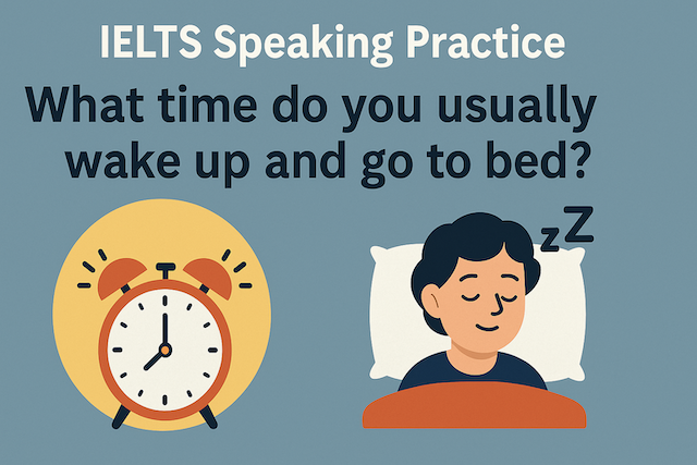 It asks you to describe your daily routine with a focus on your sleep schedule. You should state typical wake-up and bedtime, what you do in the morning and evening, how weekends differ, and explain the impact of sleep on your lifestyle. Aim for 1.5–2 minutes of continuous speech.